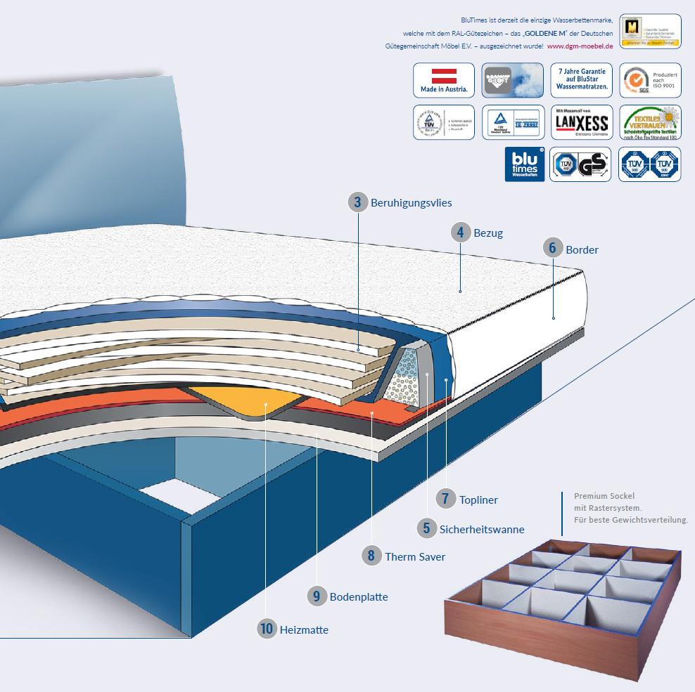 unserer hochwertigen BluTimes Wasserbettkomponenten auf